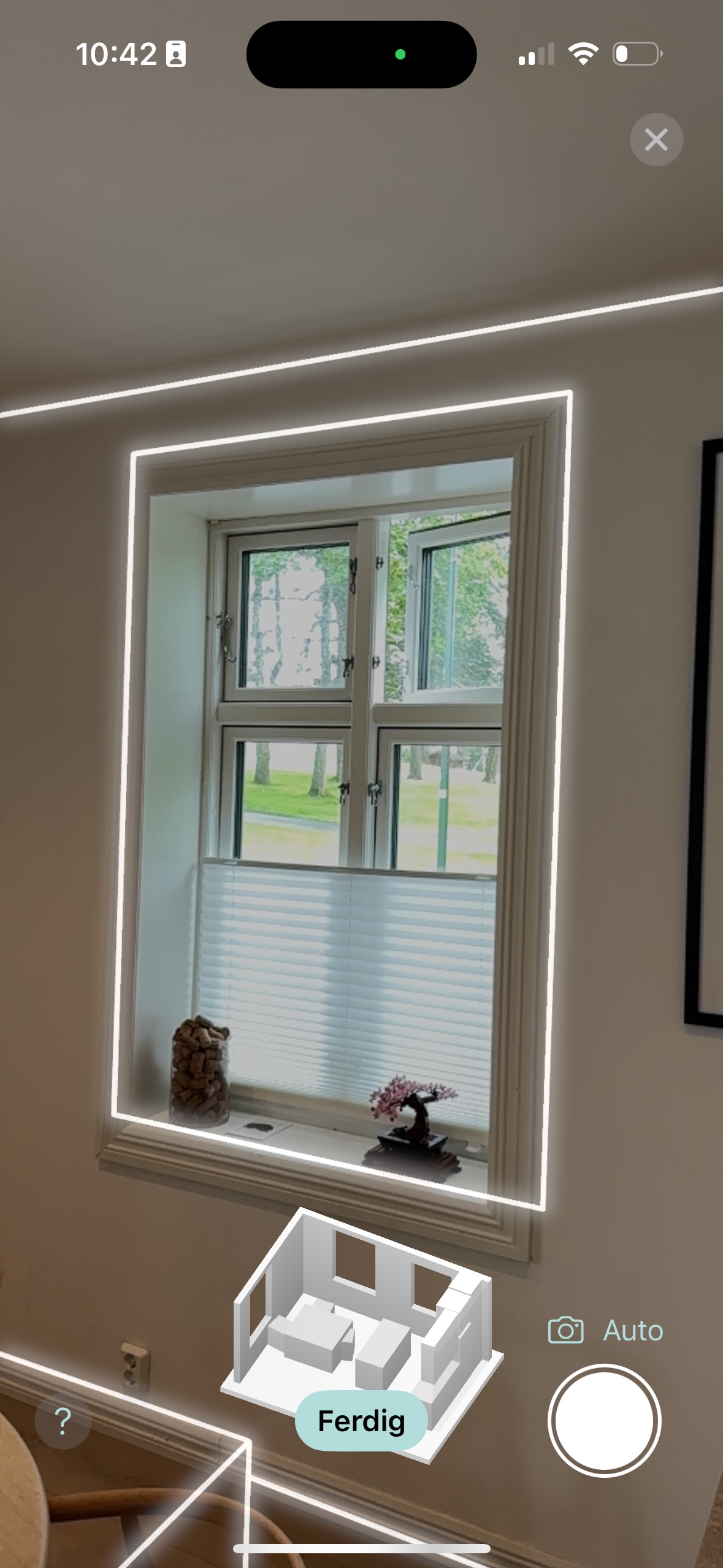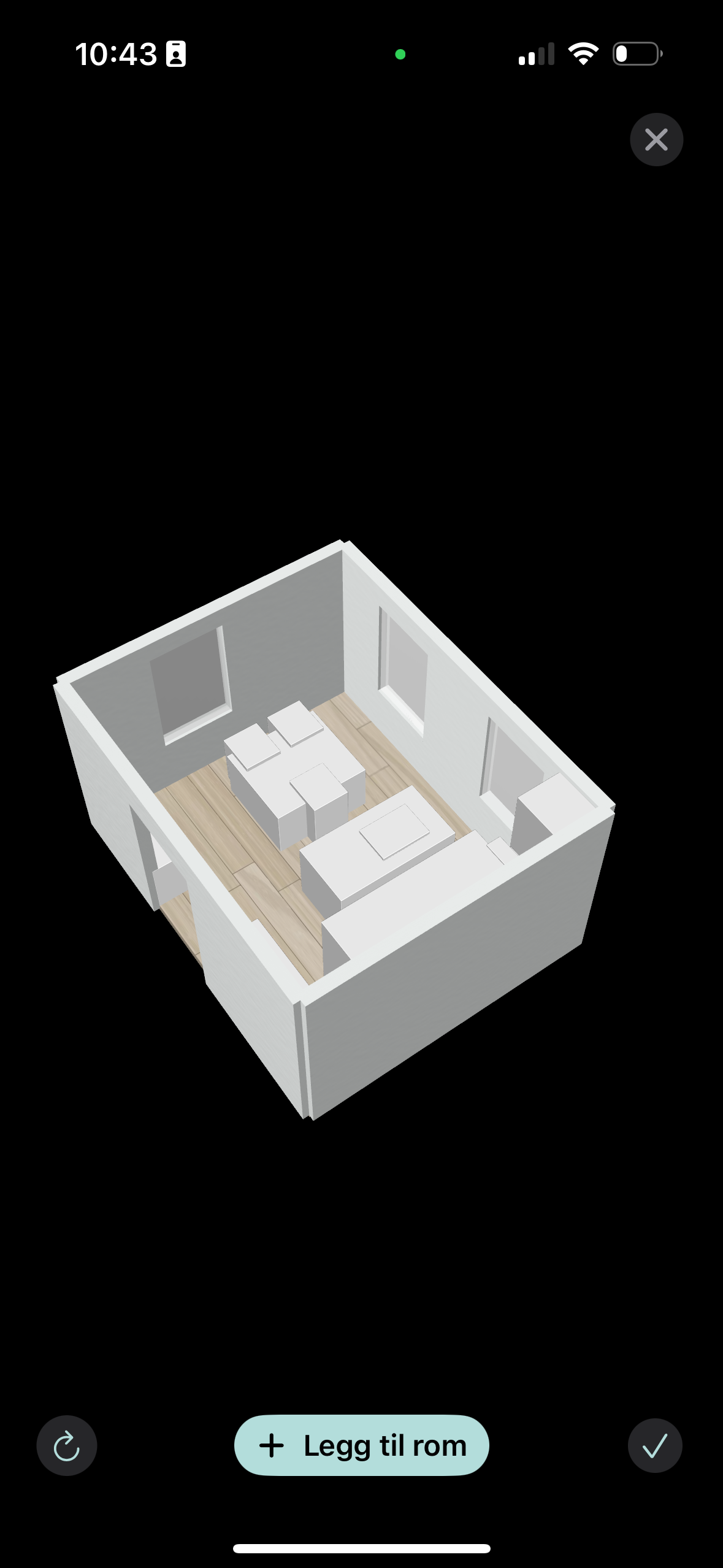 Rommet er nå scannet og klart for dokumentasjon med bilder og notater, eller direkte opplasting til webapplikasjonen for målinger og rapporter.