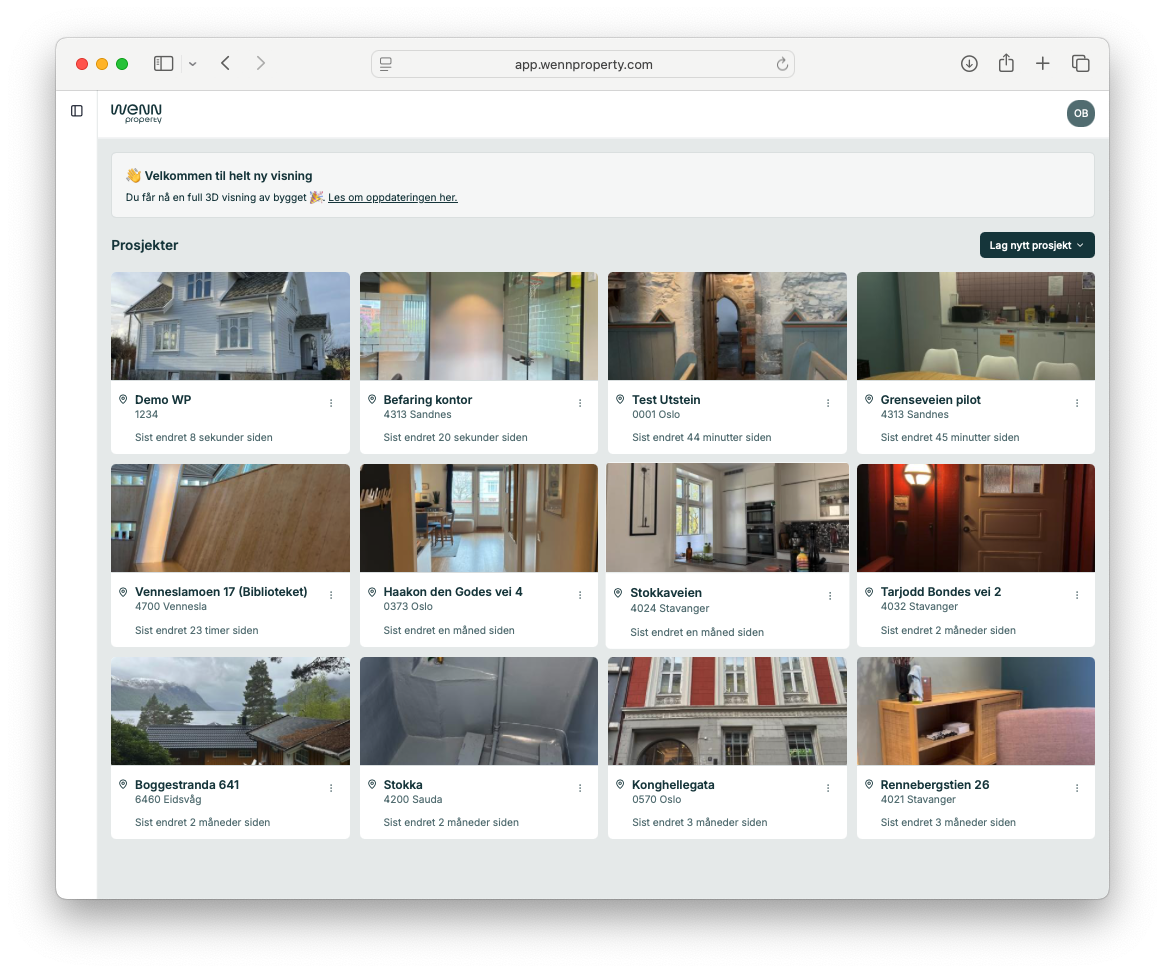 Merk: Tomme prosjekter krever opplasting av befaring fra iOS-appen for å vise 3D-data og målinger.